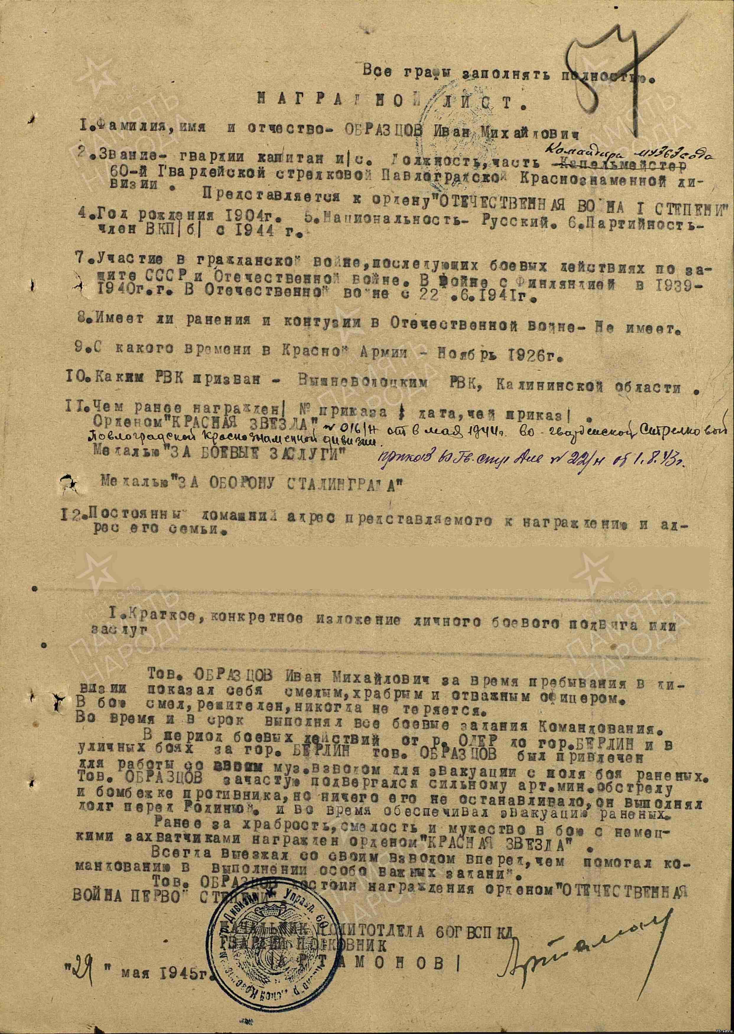 ОБРАЗЦОВ Иван Михайлович, старшина.