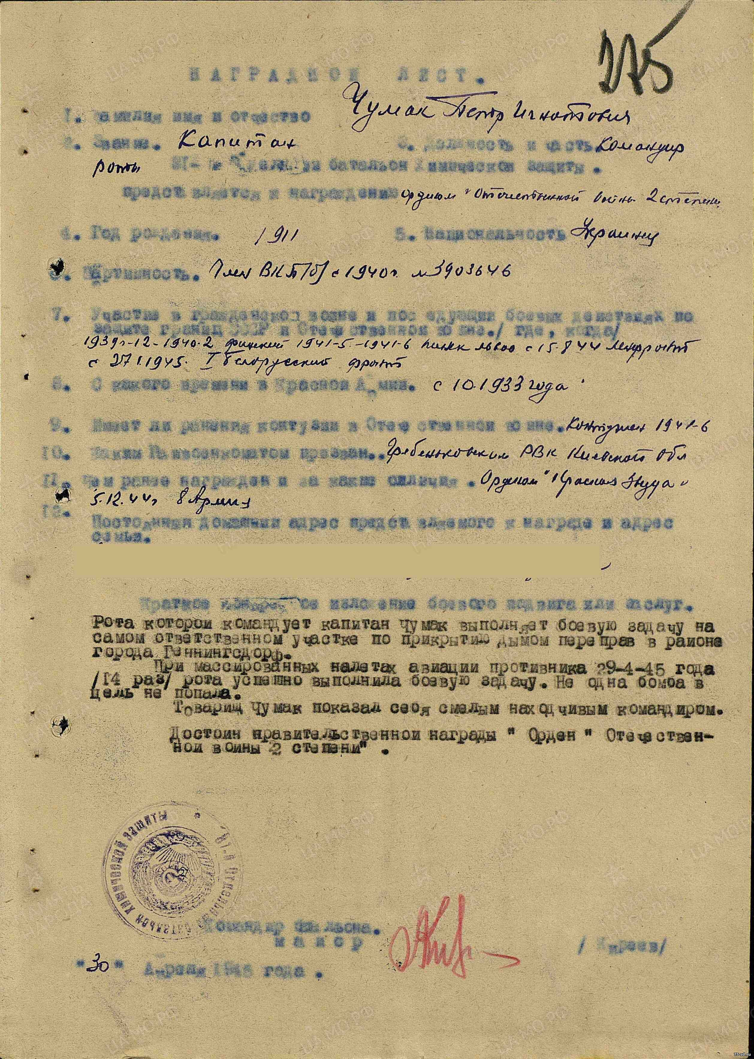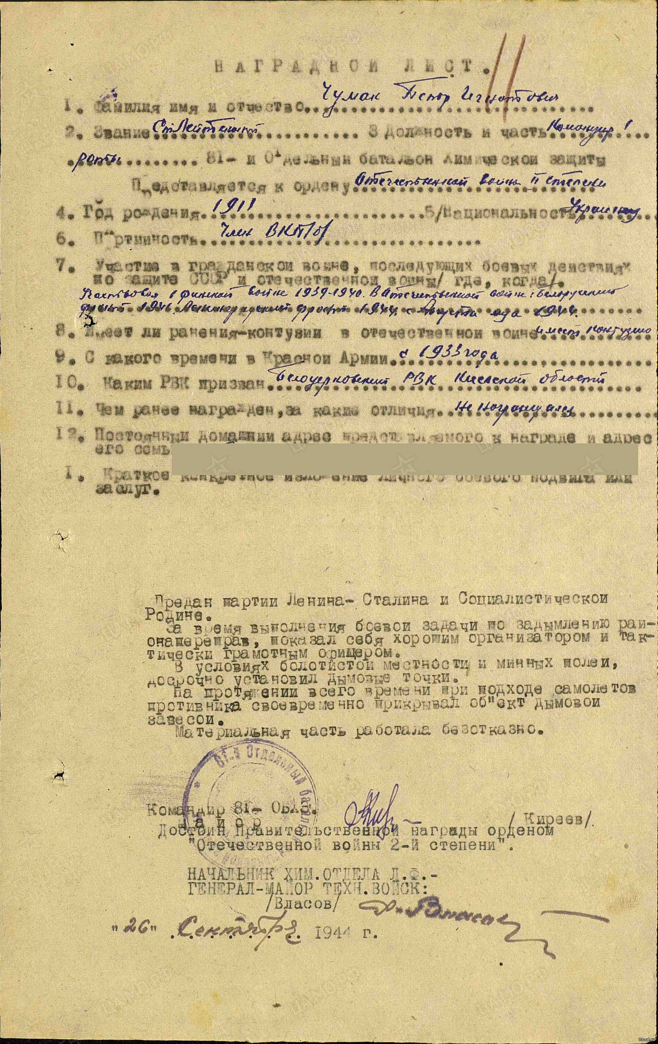 ЧУМАК Петр Игнатьевич, младший лейтенант.