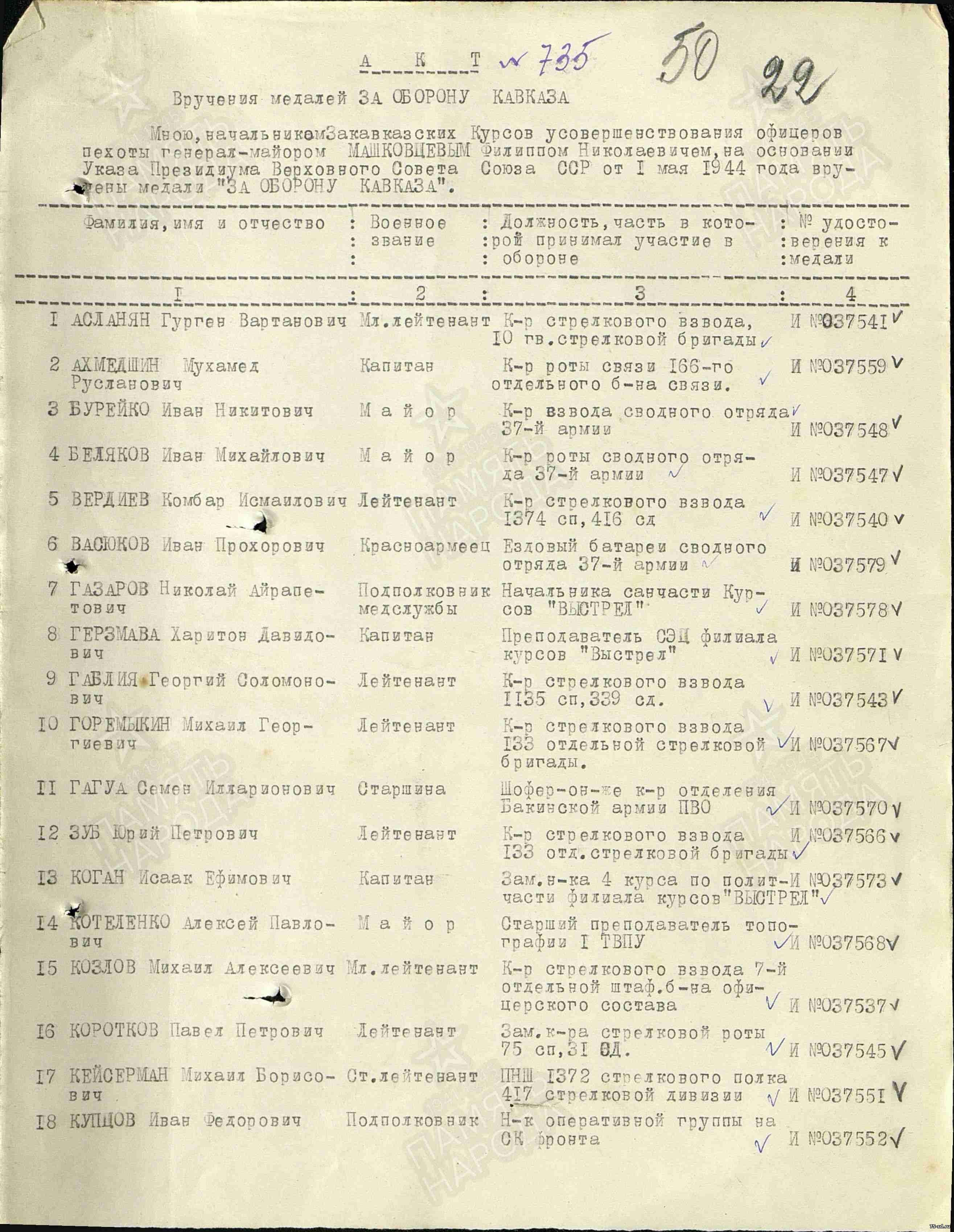 Наградной лист на старшего лейтенанта Ахметшина М.Р.