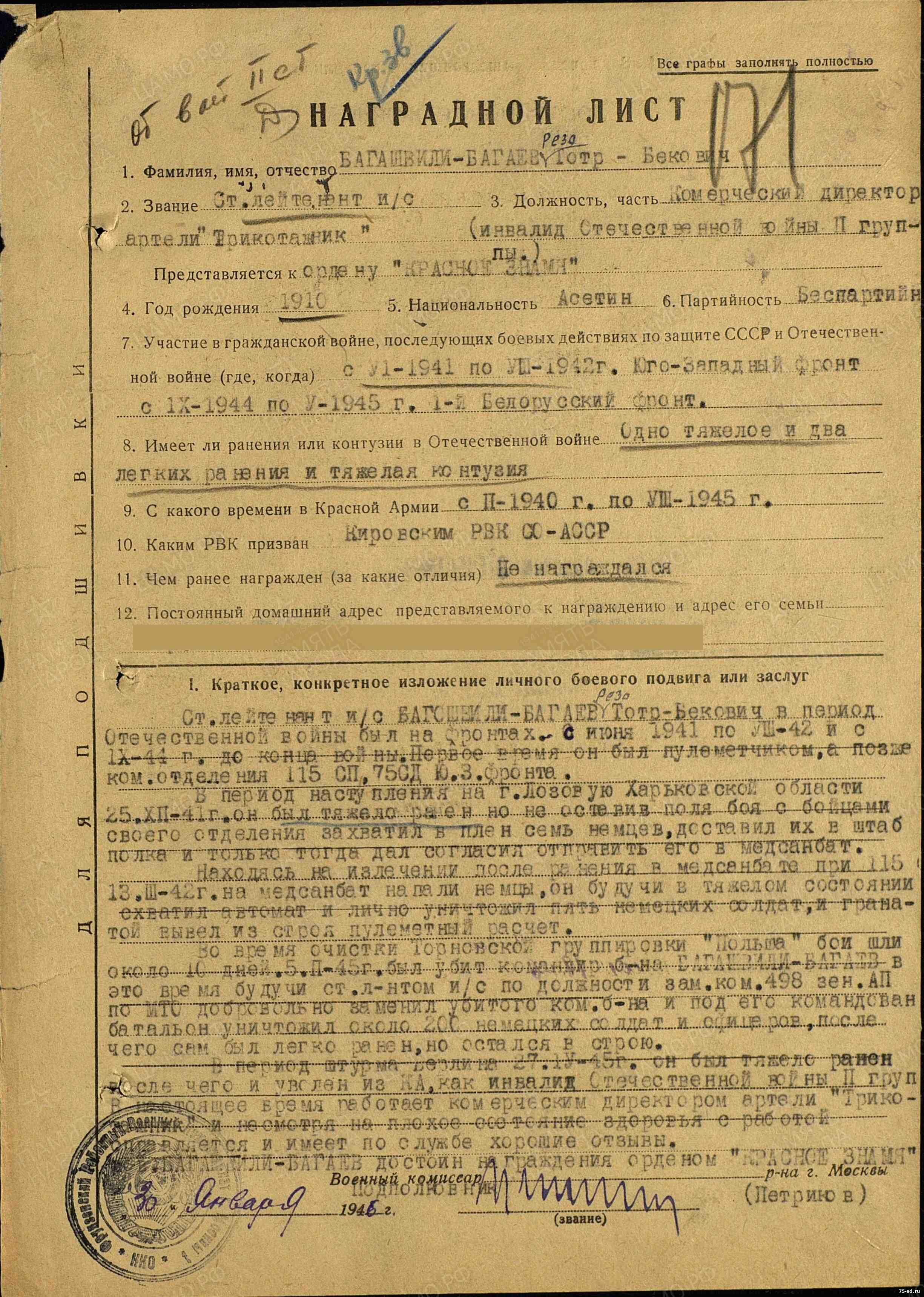 БАГАШВИЛИ-БАГАЕВ Резо Тотр-бекович, сержант.