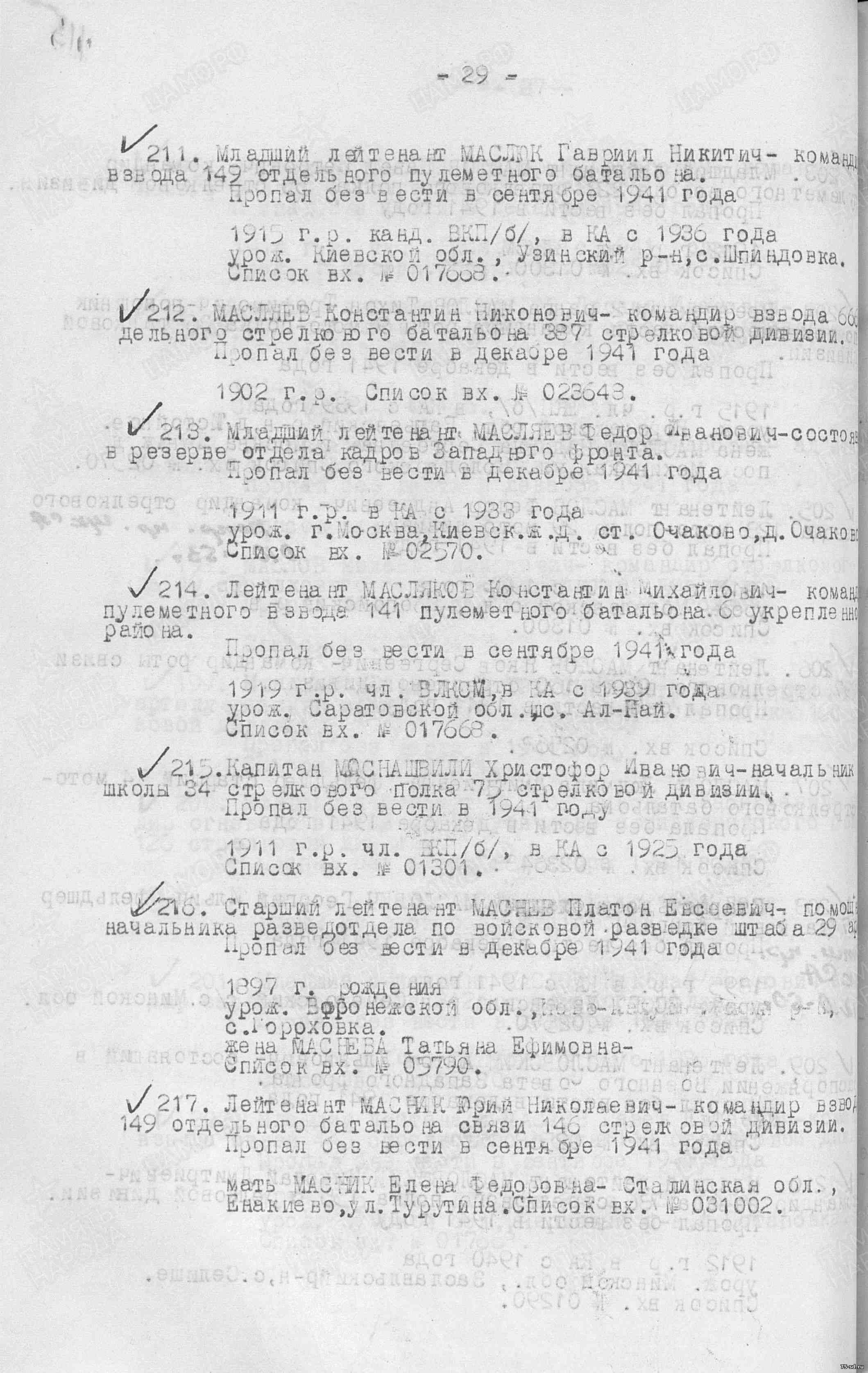 Пропал без вести при выходе из окружения под Киевом в сентябре 1941 года.