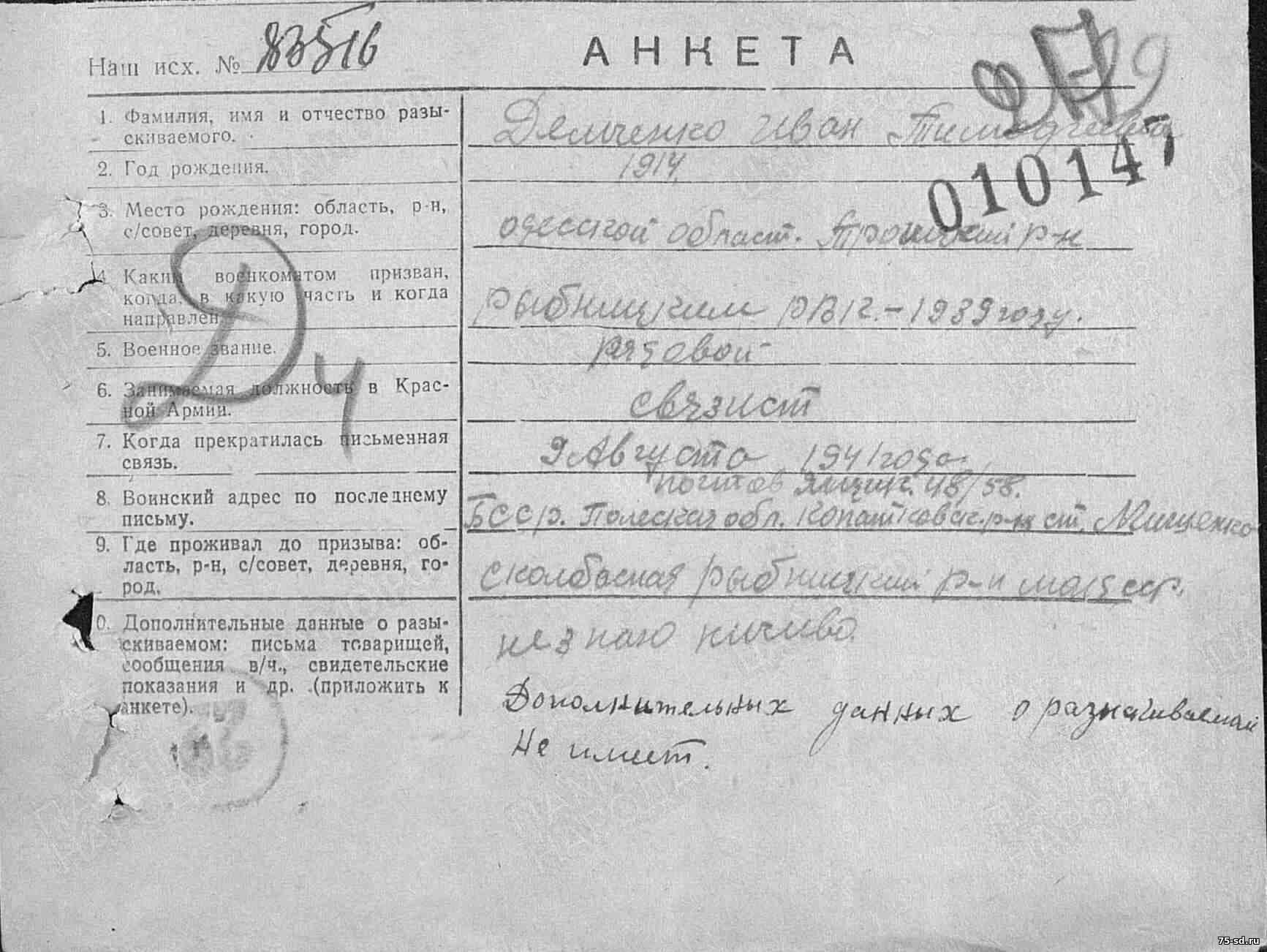 Анкета на розыск (оборот)