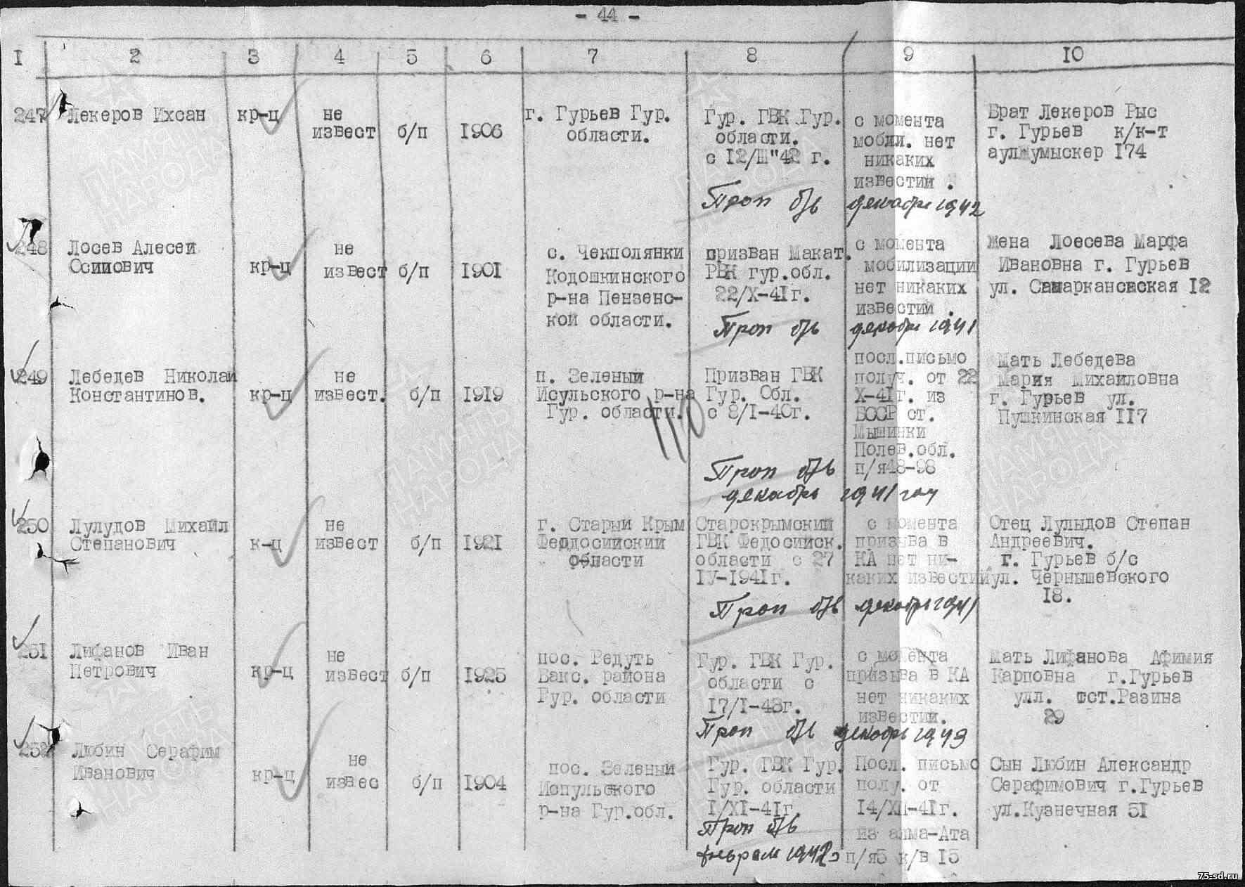 Пропал без вести в июне 1941 года. Последнее письмо датировано 22 июня 1941 года, п\я 48\98.