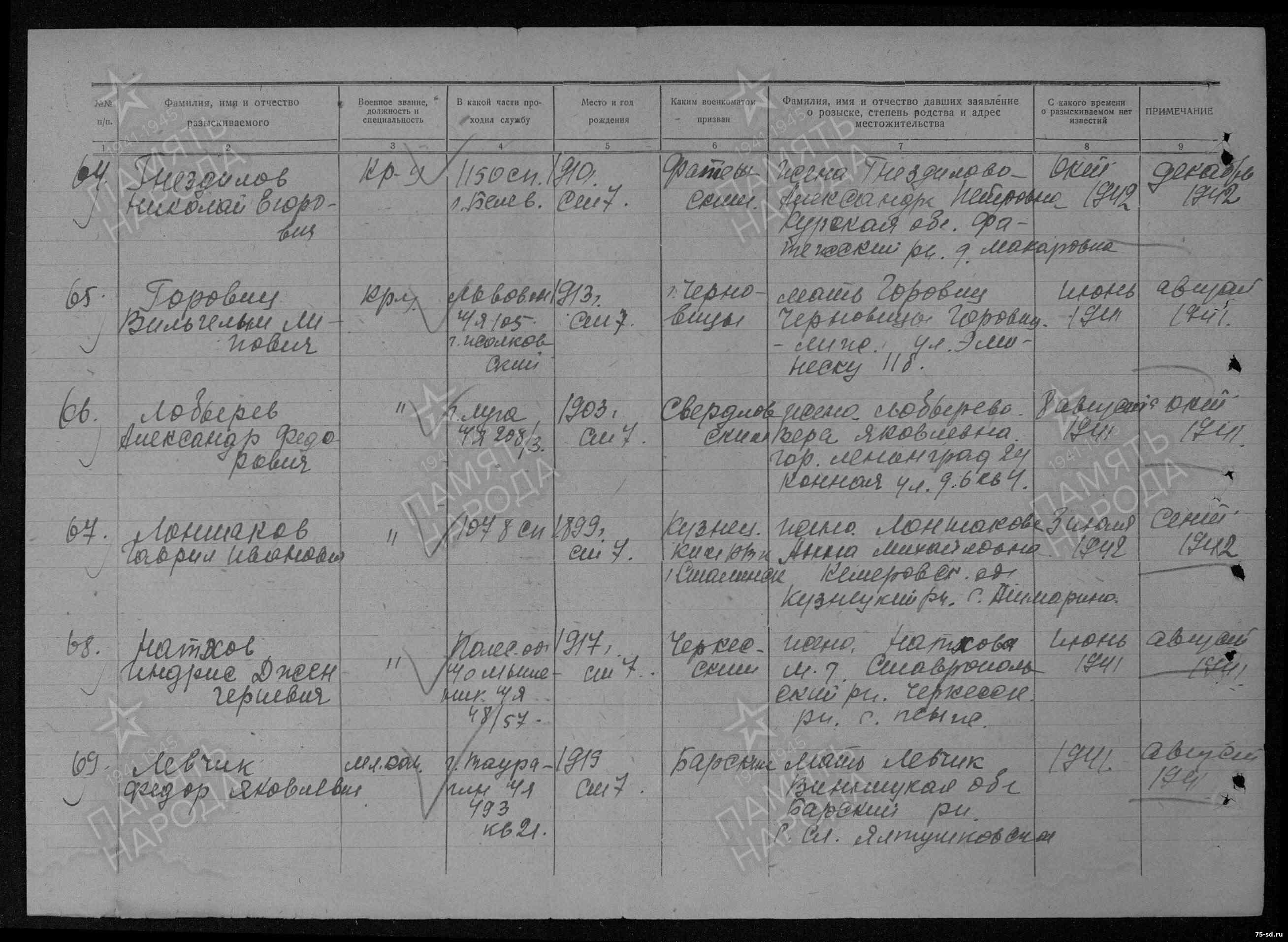 Пропал без вести в июне 1941 года. Последнее письмо датировано июнем 1941 года, п\я 48\57.