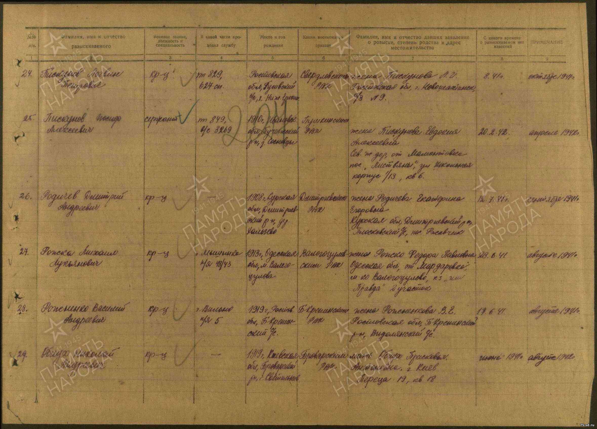 Пропал без вести в июне 1941 года. Последнее письмо пришло родным 28 июня 1941 года, п\я 48\43.
