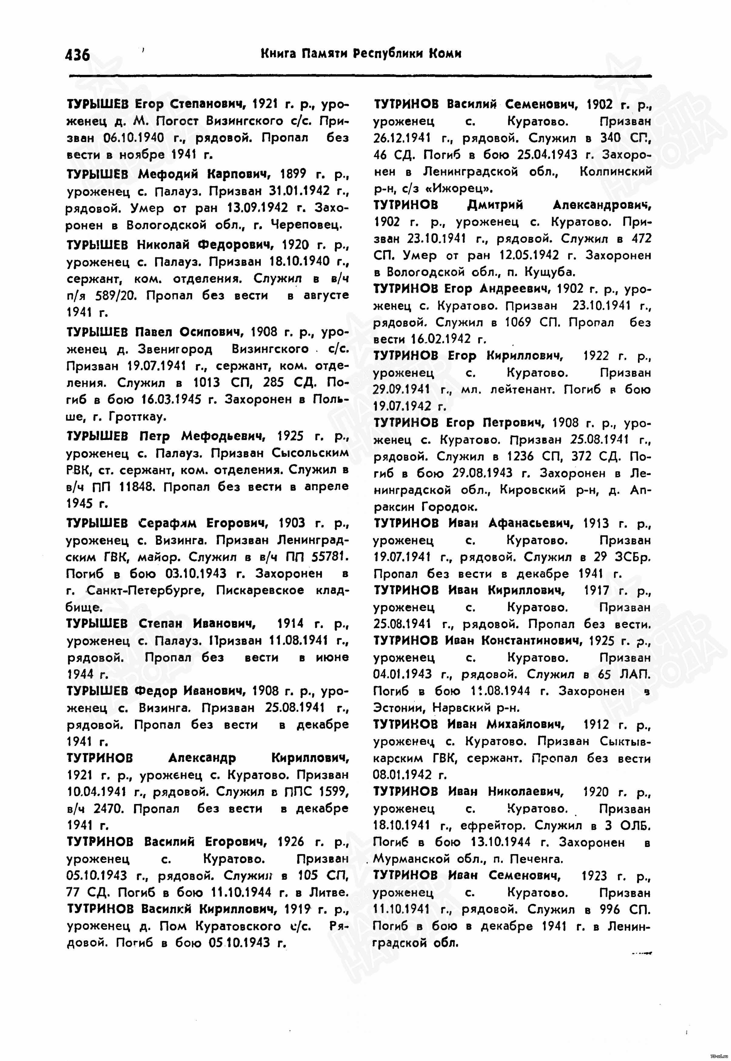 Запись в Книге памяти Республики Коми