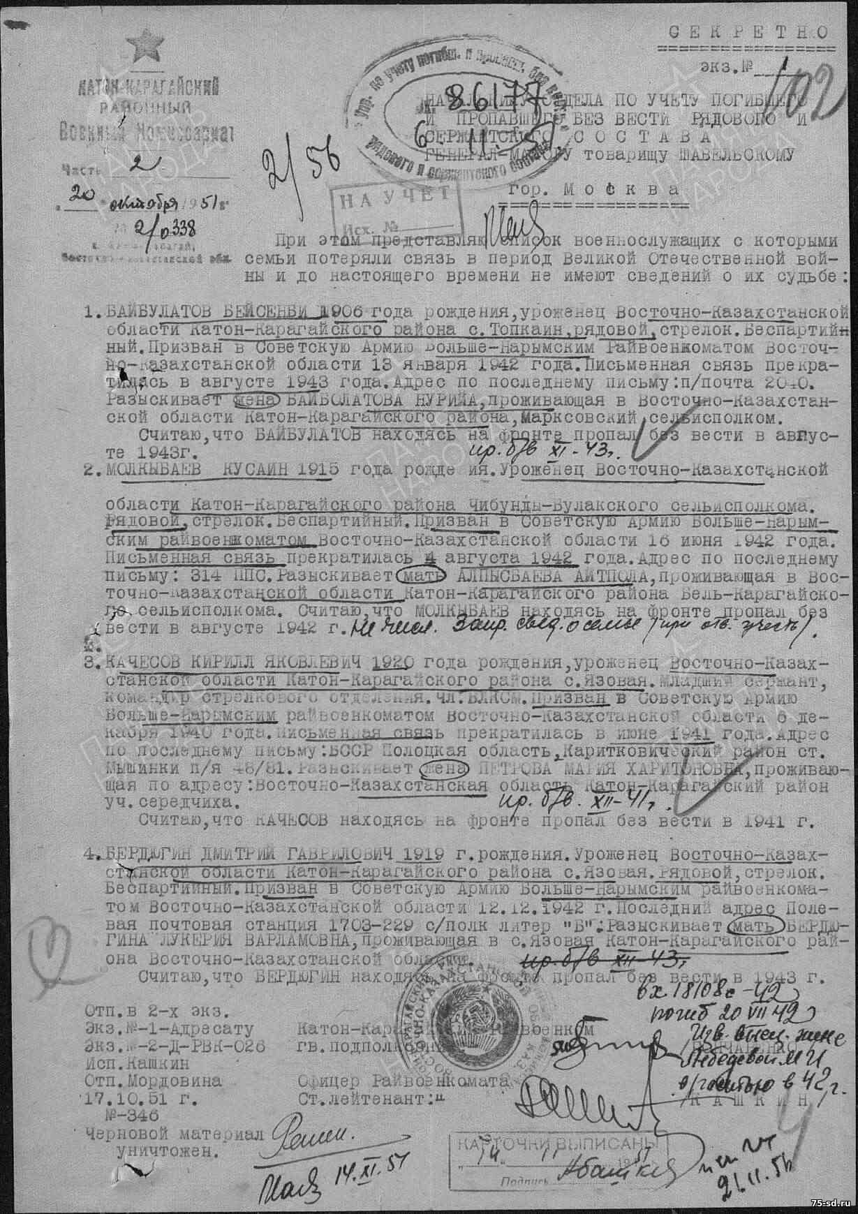 Родился в 1920 году, Казахская ССР, Восточно-Казахстанская область, Катон-Карагайский район, с. Язовая.