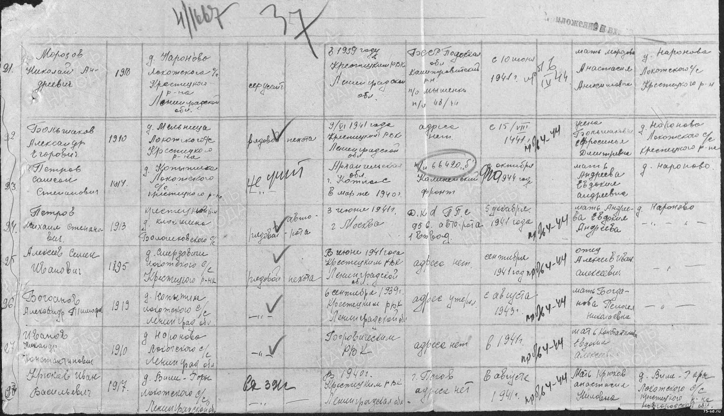 Пропал без вести в июне 1941 года. Последнее письмо датировано 10 июня 1941 года, п\я 48\44.