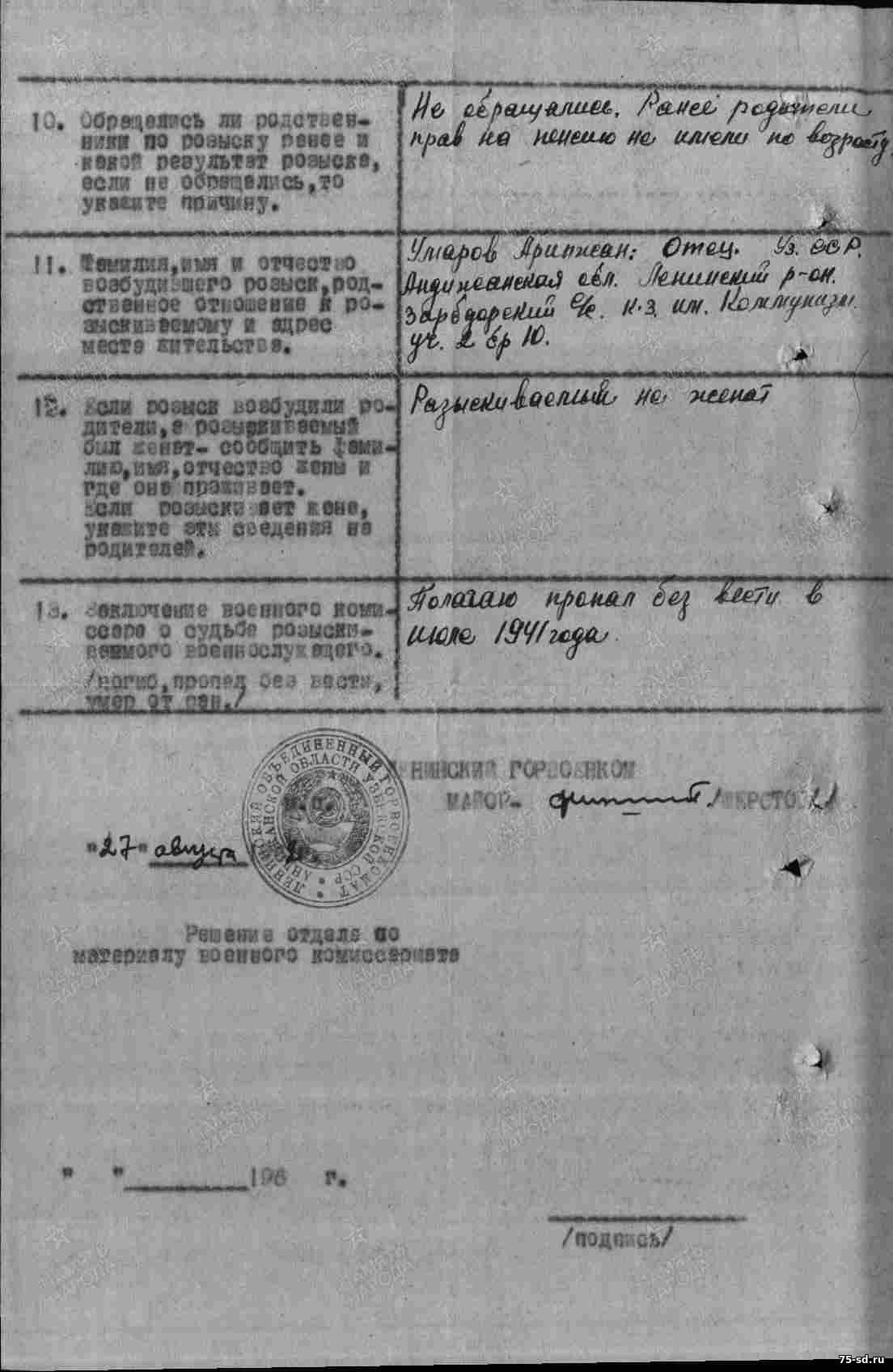Пропал без вести в июне 1941 года.