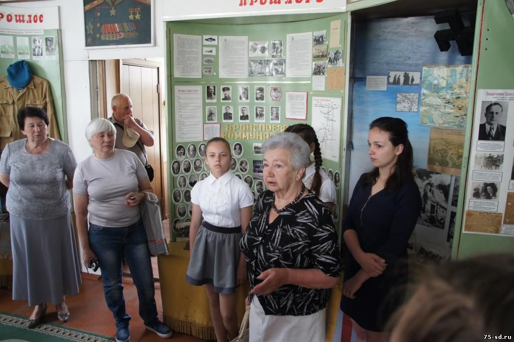 Мероприятия начались с посещения музея «Патриот» школы №2. Гостей, аплодисментами встречали школьники с портретами воинов 75-й стрелковой дивизии. Вот они, наши отцы и деды, встречают нас…
