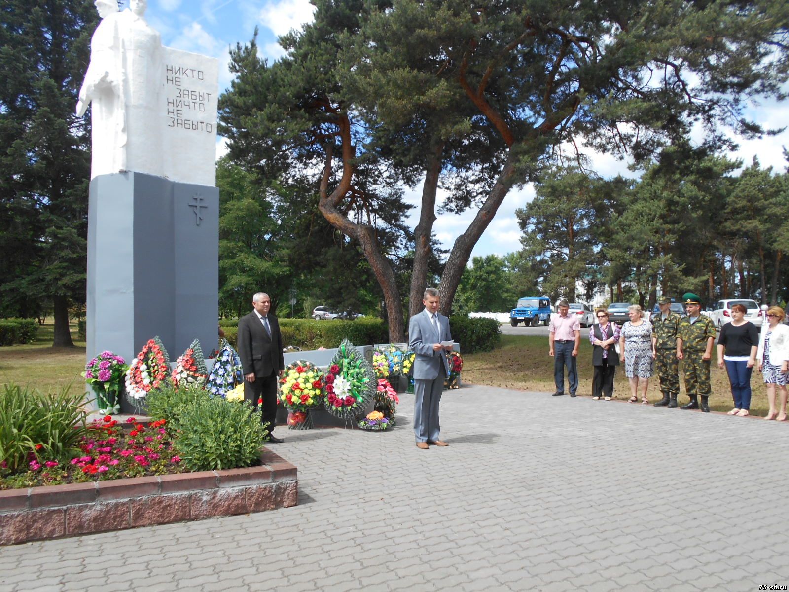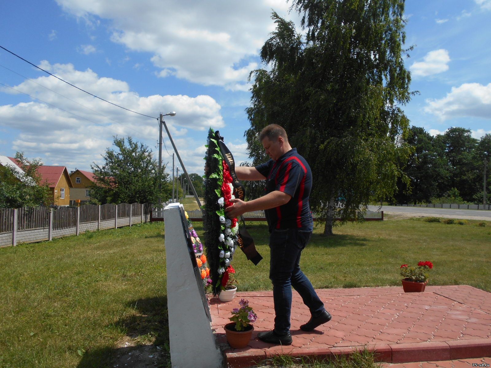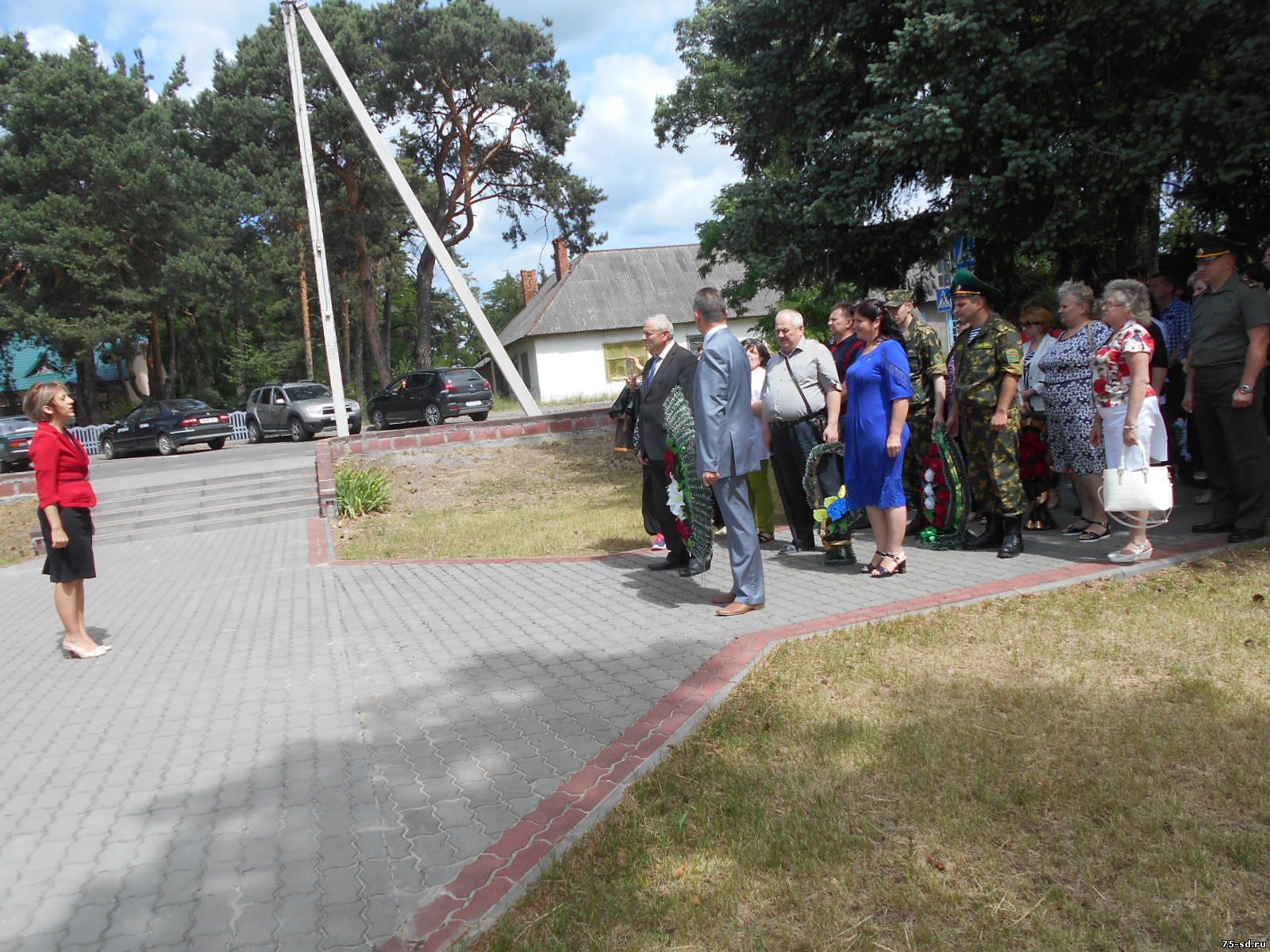 Вместе с администрацией и ветеранами Малоритского района, родственники воинов дивизии возложили венки к памятнику жертвам фашизма.